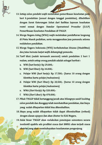 17. Pihak TNGGP tidak bertanggung jawab atas hilangnya sandi booking
